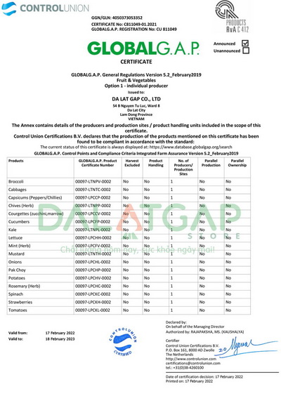 - Thời gian: 90-100 ngày. - Hạt giống: Giống thuần chủng, không biến đổi gen. - Nguồn nước: nước ngầm, không ô nhiễm. - Phân bón: phân hữu cơ. |