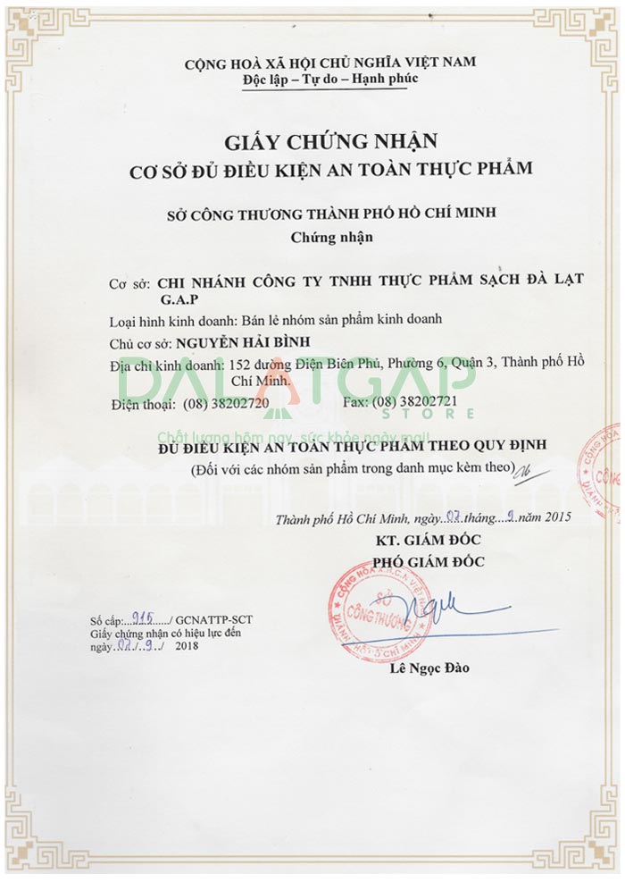 - Giấy chứng nhận cơ sở đủ điều kiện an toàn thực phẩm dành cho cửa hàng kinh doanh